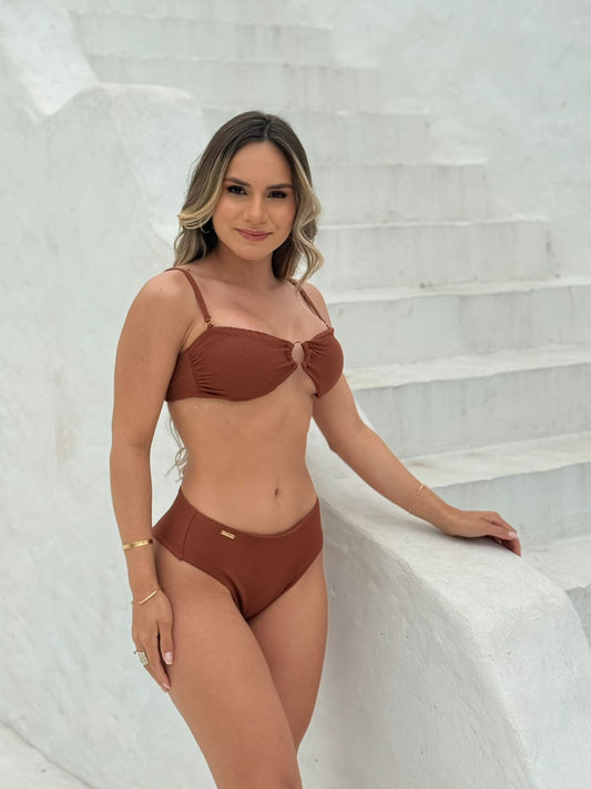 High-Waist Ring Bikini Set Terracota – Cleo