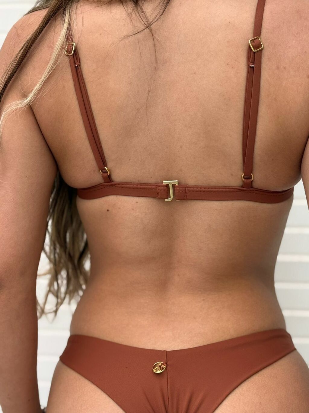 Fixed Triangle Bikini Set with Double String Bottom – Terracotta Tina