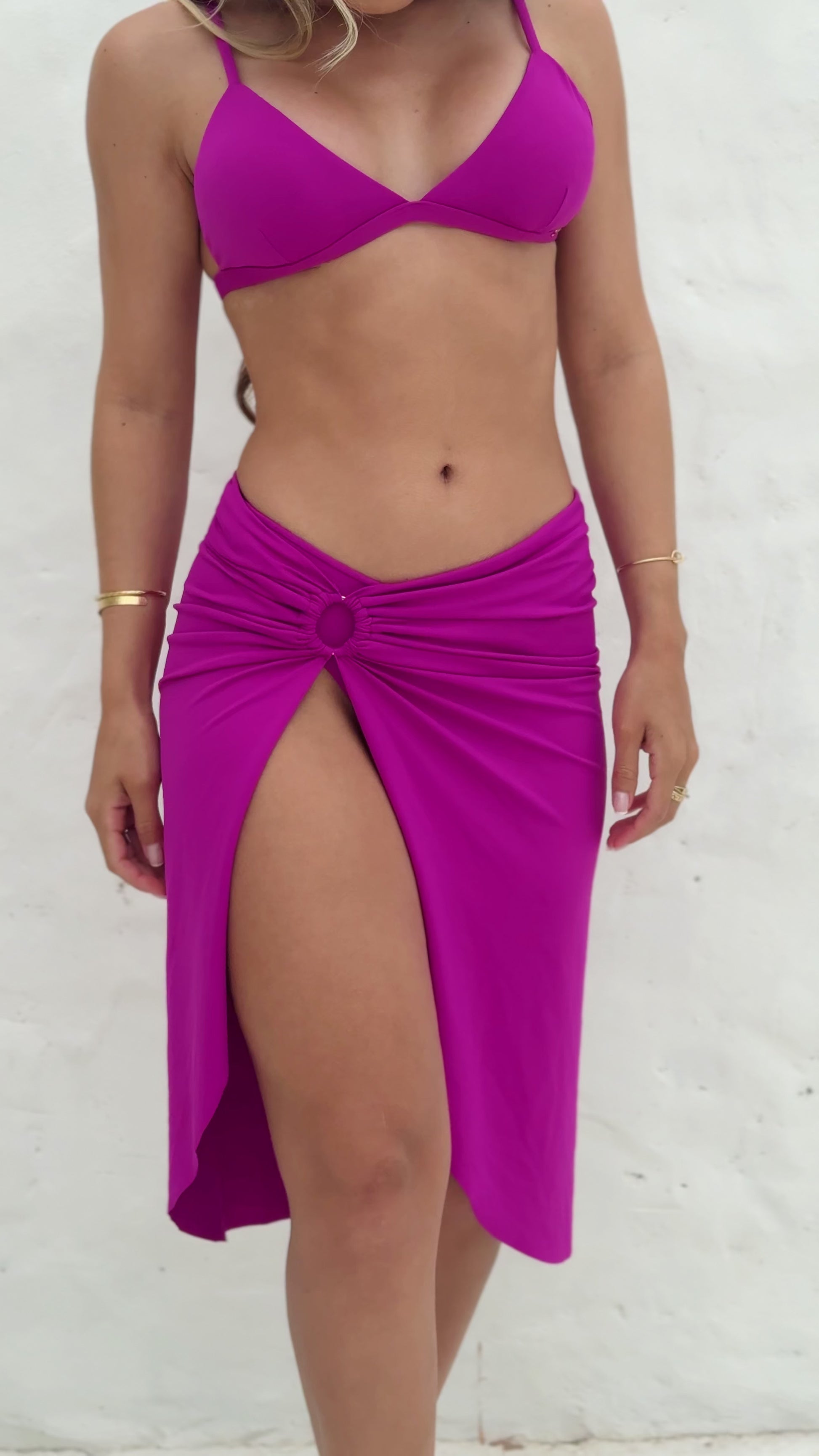 Playful and stylish, the Purple Beach Skirt with ring detail brings a modern twist to your summer wardrobe. Pair it with matching swimwear for a statement look.